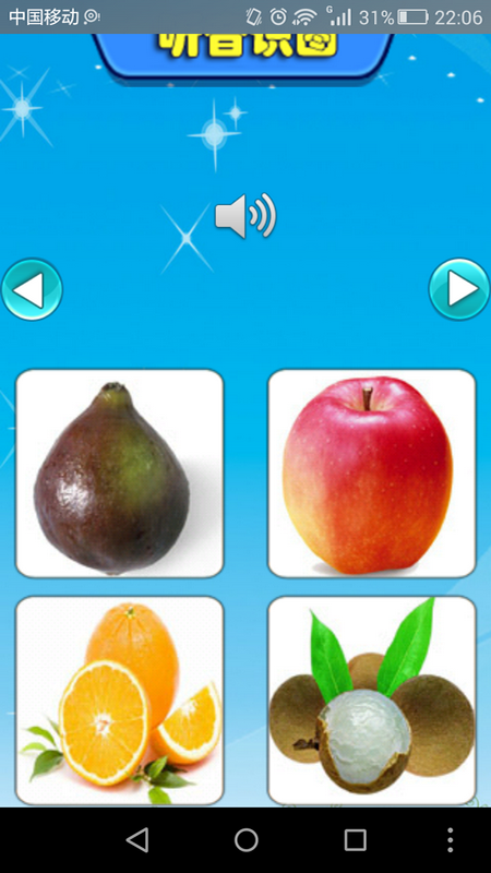 4,认水果:帮助宝宝认识50多种常见的水果,包括热带水果、温带水果等不同种类,拓展宝宝的认知范围。