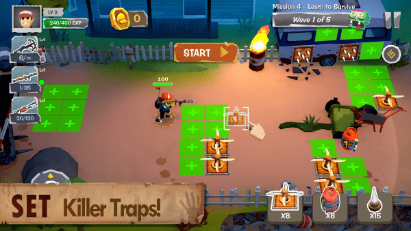 游戏提供数十种可升级的防御设施和武器系统。从简单的铁丝网到高压电陷阱,从手枪到重型机枪,你可以根据战场形势自由搭配。每种装备都有独特的属性加成,合理的组合能产生意想不到的连锁效果。