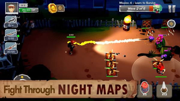 通过完成任务获得资源,你可以解锁更强大的武器装备。从基础的9mm手枪到毁灭性的火箭筒,从简单的木栅栏到自动机枪塔,丰富的升级路线让你能打造专属的防御体系。