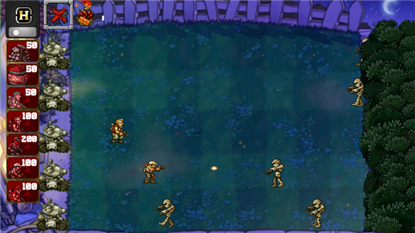 这款游戏完美继承了《植物大战僵尸》系列的精髓玩法,包括经典的放置策略、阵型搭配等核心机制。同时,通过将植物替换为合金弹头中的经典角色,僵尸变为合金弹头风格的怪物,为游戏注入了全新的视觉冲击和战斗体验。玩家需要合理部署角色,利用他们的特殊能力来阻挡不断来袭的僵尸大军。虽然操作规则与原版相似,但角色形象和战斗特效都焕然一新,给老玩家带来新鲜感的同时,也保留了熟悉的游戏体验。