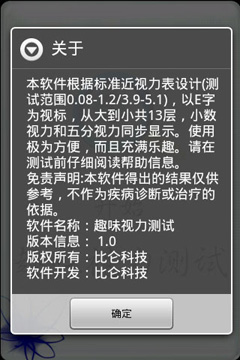 手机在线视力测试是一款专为安卓用户设计的便捷视力检测工具。这款软件采用标准近视力表(测试范围0.08-1.2/3.9-5.1),以E字为视标,包含从大到小共13层视力测试,同时显示小数视力和五分视力两种计量方式。软件操作简单直观,界面清爽友好,占用内存极小,无任何广告插件,确保使用过程安全无忧。无论是想随时监测视力变化,还是进行趣味性视力测试,这款软件都能满足您的需求。现在就来2265安卓网下载体验吧!