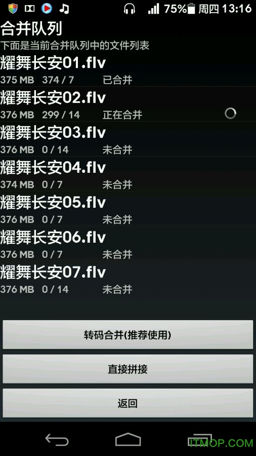 支持后台合并服务,合并过程不会影响手机其他操作。
