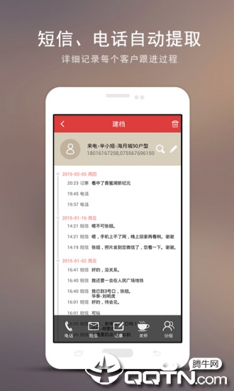 1. 客户往来记录:系统会自动记录与客户的所有沟通记录,包括电话、短信、记事等,并以直观的时间轴方式展示,让用户随时掌握客户动态,避免遗忘重要事项。