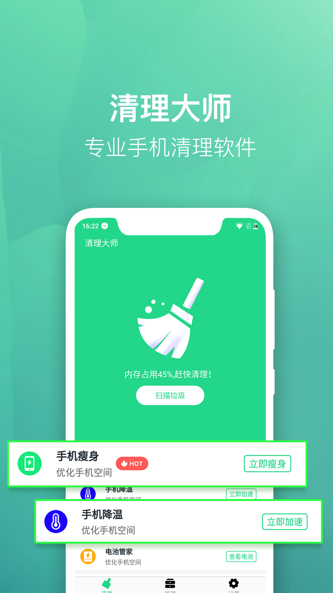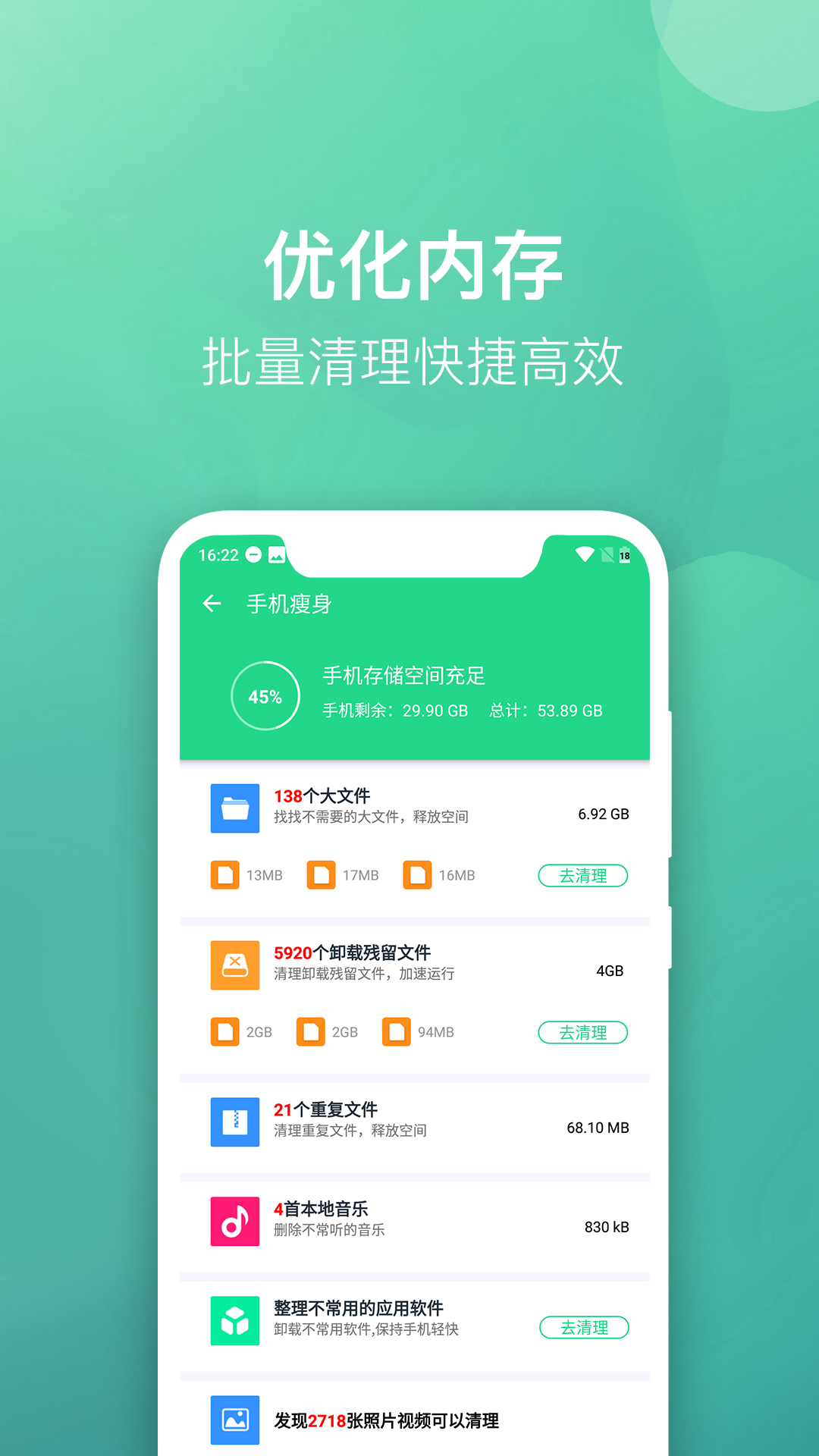 【一键清理】智能学习用户习惯,自动区分重要缓存与无用垃圾,避免误删重要数据。支持设置定时清理,夜间自动完成维护工作