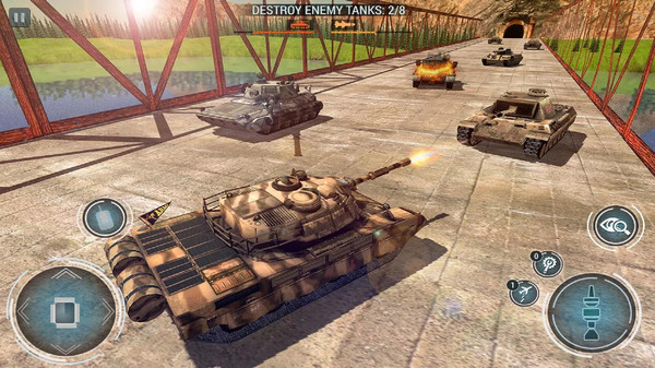 游戏的操作系统经过精心设计,既保留了真实坦克的操控感,又兼顾了手机游戏的便捷性。左侧虚拟摇杆控制移动方向,右侧按钮控制炮塔旋转和射击,简单易上手但又有足够的深度。随着游戏进程,你还能解锁更多高级操作技巧,比如漂移转向、快速装填等。