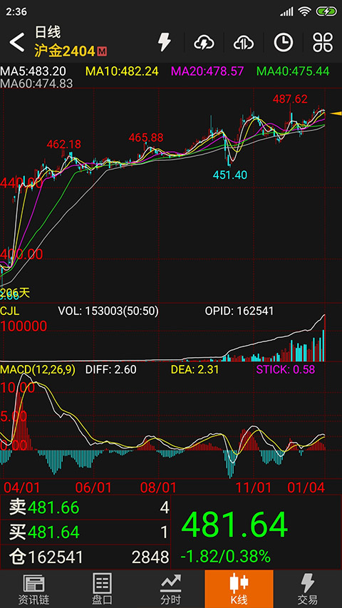 支持横屏显示模式,提供更大更清晰的图表展示空间,便于进行深入的技术分析和趋势判断。