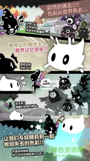 游戏讲述了一个充满奇幻色彩的故事:全世界的"色彩"被突如其来的怪兽掠夺,原本绚丽多彩的世界变成了单调的黑白两色。在这危急时刻,传说中的傀儡师成为了唯一的希望。然而当妖精莉莉召唤救世主时,出现的却是一个失忆的白色年糕状生物——这竟是傀儡师的半魂。玩家将扮演这个失去记忆和肉体的特殊存在,在妖精莉莉的协助下,通过收集各种傀儡的力量,逐步夺回被怪兽抢走的色彩。游戏通过幽默风趣的对话和跌宕起伏的剧情,为玩家呈现了一个既搞笑又感人的冒险故事。