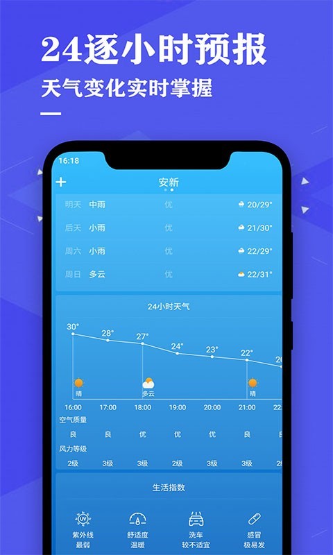 1. 精准实时与24小时逐小时天气预报,温度变化冷暖早知道,让您随时掌握天气动态,合理安排穿衣搭配。