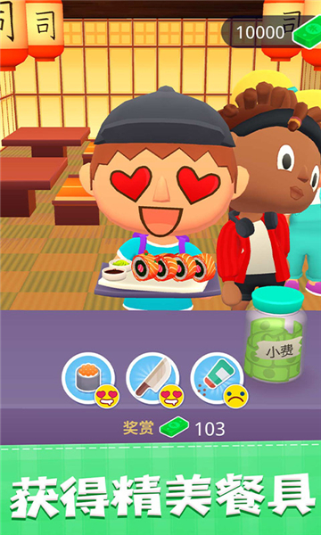 总的来说,美味寿司店手机版是一款集休闲、经营、模拟于一体的优质手游,无论是精美的画面、丰富的玩法还是真实的寿司制作体验,都能让玩家沉浸其中,享受经营寿司店的乐趣。游戏操作简单易上手,但想要成为寿司大师还需要玩家不断练习和探索。快来下载美味寿司店手机版,开启你的寿司创业之旅吧!