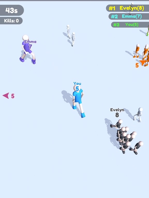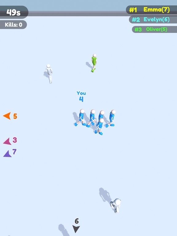2、当两支队伍相遇时,人数占优的一方可以吞噬对方成员,这种以多打少的设定鼓励玩家采取团队协作策略,同时也创造了紧张刺激的对抗体验。