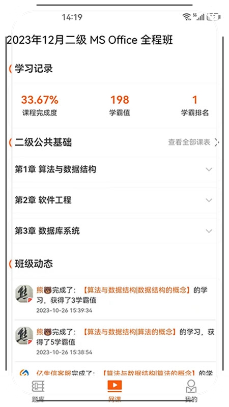 1打开【虎奔等考】,点击主页右下角【我的】进入个人中心,此处可查看学习数据和账户信息。