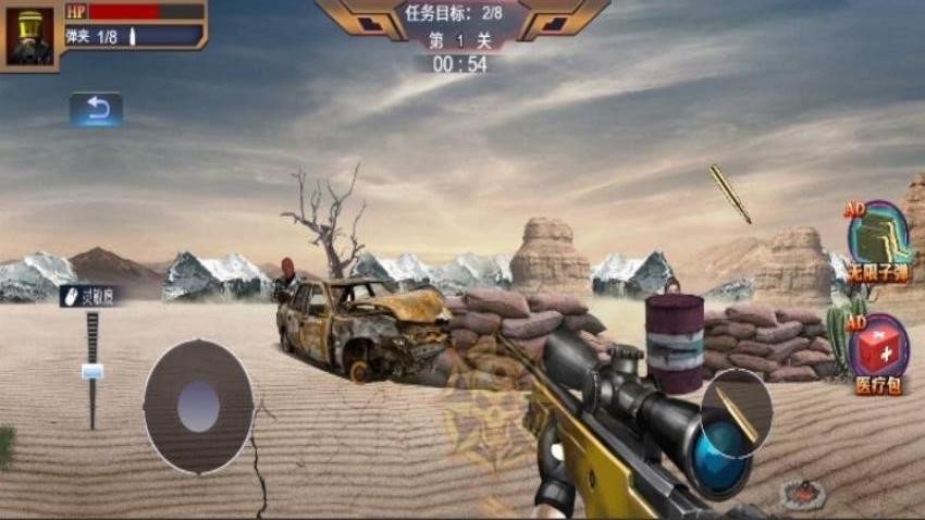沙漠狙击手是一款以现代战场为背景的第一人称射击类游戏,它将带给玩家身临其境的狙击作战体验。在这款游戏中,玩家将扮演一名身经百战的精英狙击手,在广袤无垠的沙漠战场中与敌人展开生死较量。游戏采用先进的物理引擎打造,无论是枪械的后坐力模拟、子弹的弹道轨迹,还是环境的风向影响,都力求还原最真实的狙击体验。玩家需要精准计算射击角度和距离,瞄准敌人的要害部位一击毙命,才能顺利完成各种高难度任务。