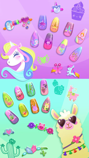 游戏特别设计了4个梦幻主题的美甲沙龙:火烈鸟、骆马、美人鱼和独角兽,每个主题都拥有独特的艺术风格;