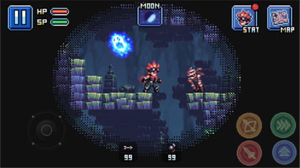 游戏采用简单直观的操作方式,通过左右移动、攻击和跳跃等基本操作就能掌控角色,体验酣畅淋漓的战斗快感。2、击败怪物后会随机掉落各种装备道具,玩家可以收集独特的武器和装备,每种装备都会带来不同的战斗体验。3、灵活运用跳跃和翻滚等闪避动作是生存的关键,玩家需要精准判断敌人的攻击时机,巧妙避开危险招式。4、每个关卡都经过精心设计,充满巧妙的机关陷阱和迷宫结构,玩家需要开动脑筋寻找最佳通关路线。5、游戏中会遇到各种性格鲜明的NPC角色,玩家可以招募他们成为冒险伙伴,组建强大的团队挑战更深层的地牢。