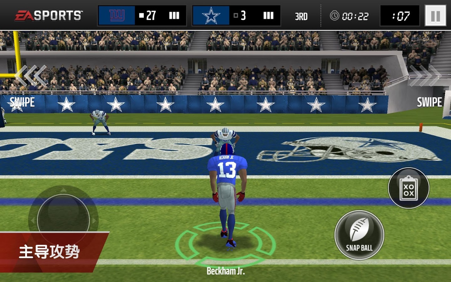 游戏采用先进的物理引擎和逼真的画面效果,完美还原了美式橄榄球的赛场对抗和战术配合。