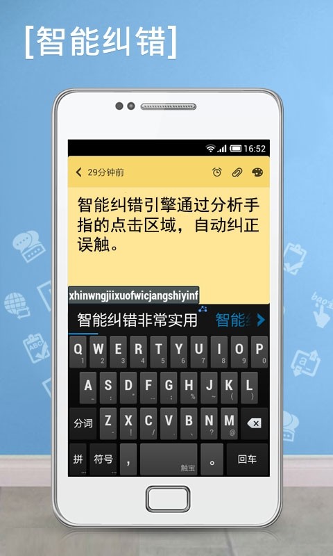 智能整句输入引擎采用先进的自然语言处理技术,能够理解完整的句子结构,预测用户的表达意图。超强的误按键纠错系统基于数百万用户的使用数据训练,即使连续按错多个按键也能准确识别原意。拼音结合手写的混合输入模式开创了移动输入新方式,简拼输入后可直接手写选字,大幅减少翻页次数。中英文混合输入技术突破语言界限,系统能智能判断当前输入的语种,自动完成切换。T+全键双字母布局经过人体工学优化,按键面积比传统键盘增大30%,有效降低误触率。
