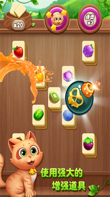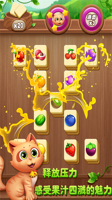 4.提示功能:当玩家遇到困难时,可以启用智能提示系统,游戏会自动高亮显示可连接的水果组合,帮助玩家顺利过关。