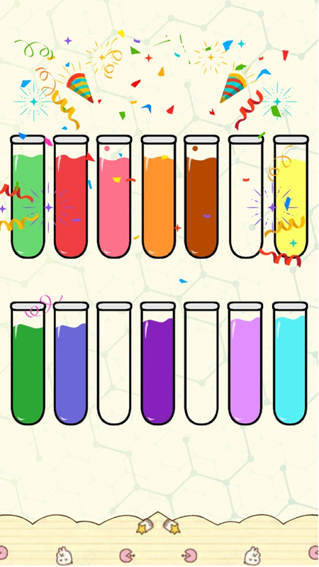 1、通过将同色液体分类的简单玩法,带来轻松愉快的游戏体验。
