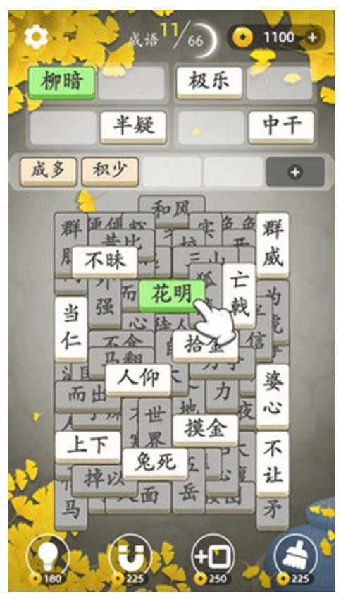 游戏收录了从小学课本到专业词典级别的上万条成语,按照难度分级呈现。每完成一个主题关卡,系统会自动生成该成语的典故动画和近义词拓展,让学习过程像拆盲盒一样充满惊喜。特别设计的"成语树"成长系统,会直观展示玩家已掌握的成语知识图谱。