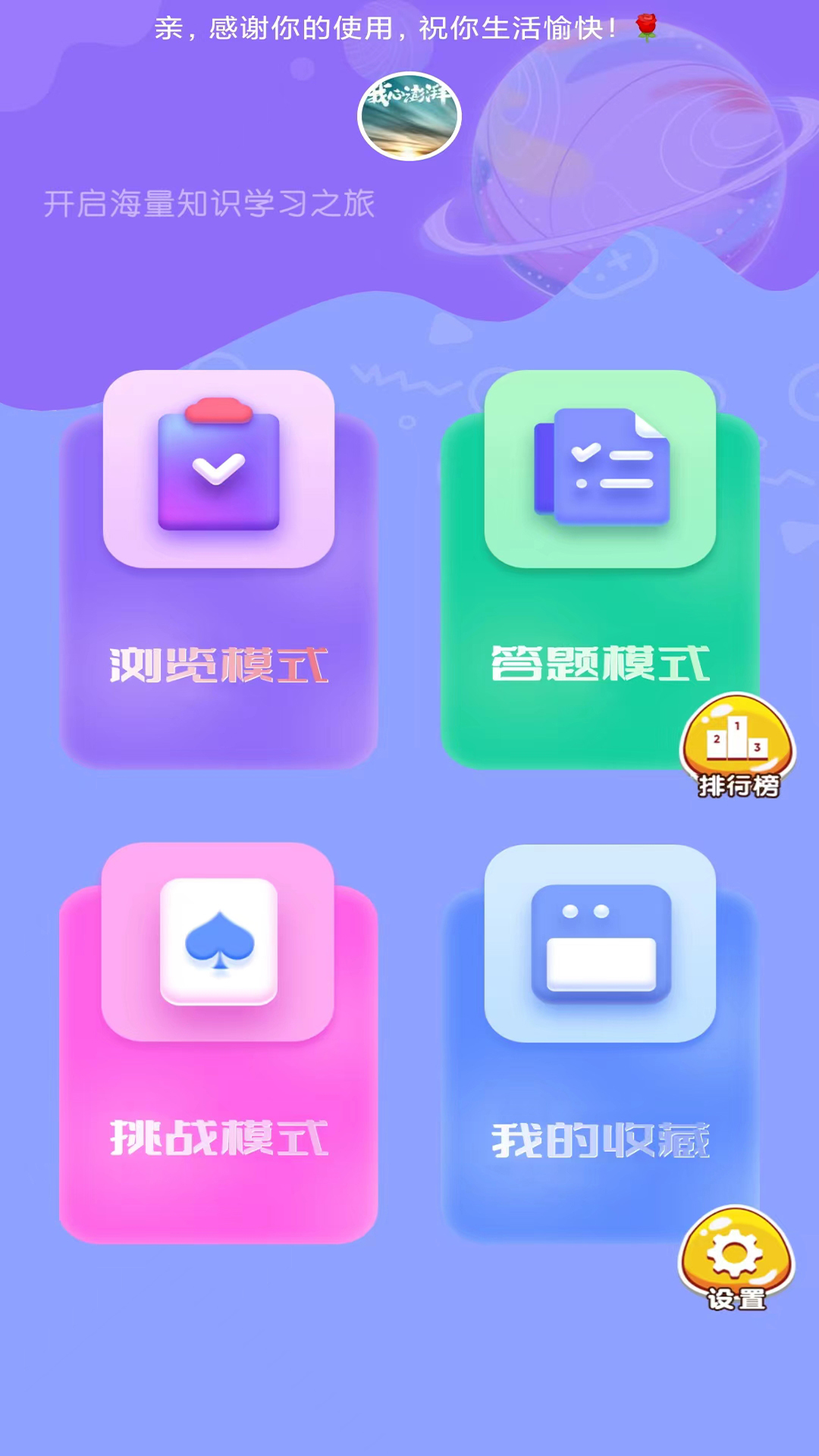 应用精心设计了多种玩法模式,满足不同用户的学习和娱乐需求。在浏览模式下,你可以像阅读百科全书一样自由探索各类知识;挑战模式则为你提供了与好友或全球玩家一较高下的机会;而答题模式则通过智能算法为你量身定制学习路径,帮助你系统性地提升知识储备。这些丰富多样的玩法设计,让学习过程变得生动有趣,告别枯燥乏味的传统学习方式。