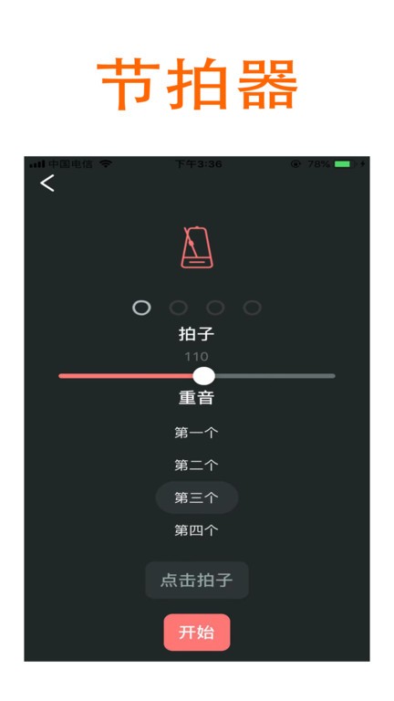 3.音阶练习包含12个大调、12个小调及各种变化音阶,配有速度调节和循环练习功能。