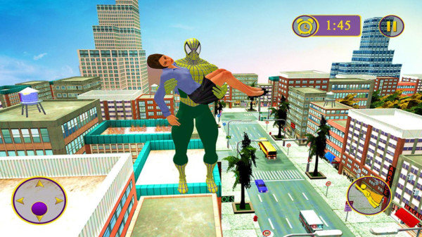 2、你将真正的扮演一名蜘蛛侠英雄,穿梭在城市高楼之间打击大量邪恶的敌人。游戏特别设计了真实的摆荡系统,让你感受蜘蛛侠标志性的移动方式,体验飞檐走壁的快感。