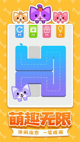 《汪星人一笔画》是一款充满趣味与挑战的益智休闲游戏。玩家需要通过一笔画的方式,带领可爱的汪星人走遍所有格子,完成关卡挑战。游戏拥有数百个精心设计的关卡,难度从简单到复杂逐步提升,适合不同水平的玩家体验。在遇到困难时,系统提供的提示功能可以帮助玩家找到正确的路径,轻松过关。无论是打发碎片时间,还是锻炼逻辑思维能力,这款游戏都能带来轻松愉快的体验。游戏画面简洁明快,玩法简单易上手,但想要完美通关却需要玩家开动脑筋,规划最优路线。