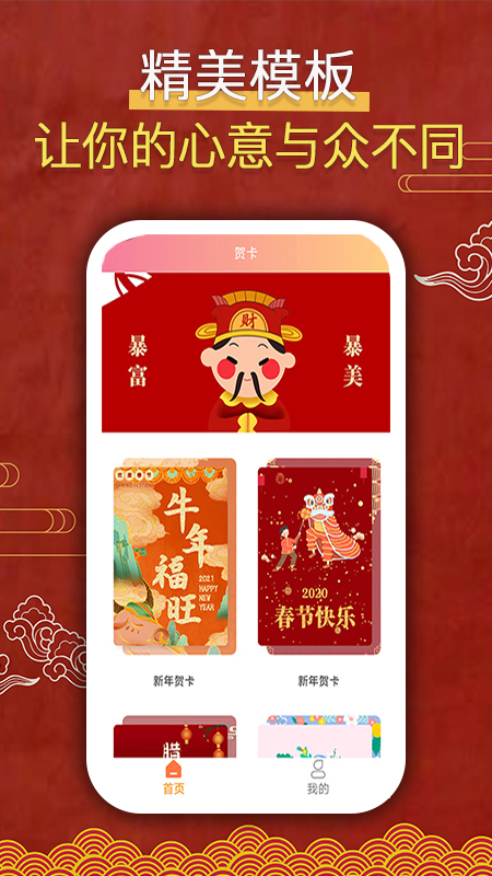 【精美模板】软件根据不同节日主题,精心设计了风格多样的贺卡模板库,涵盖了新年、情人节、元宵节、生日等数十个重要节日。每个模板都融入了节日特色元素,如春节的红包元素、情人节的爱心图案等,让祝福更具节日氛围。同时还会定期更新季节性限定模板,确保用户总能找到最应景的贺卡设计。