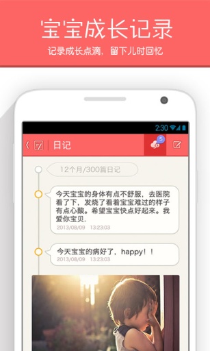 3. 育儿日记:用户可以记录孩子的成长点滴,包括身高、体重、疫苗接种情况等。通过育儿日记,用户可以跟踪孩子的发育情况,及时发现潜在问题,并与医生进行有效沟通。