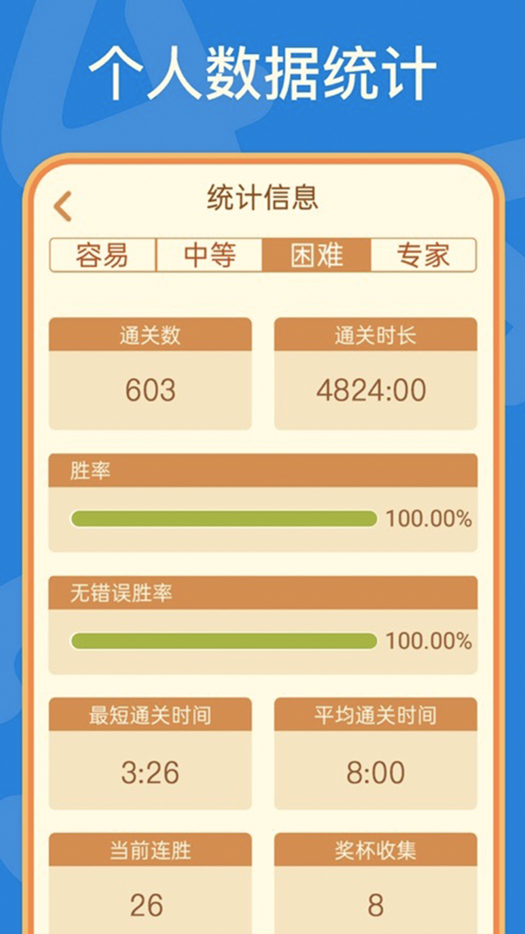 3.计时与评分:支持计时功能,并提供评分系统,激励玩家不断挑战自我。评分系统综合考虑解题时间、错误次数和难度系数,给出公平的评价。玩家还可以查看历史成绩统计,了解自己的进步情况。