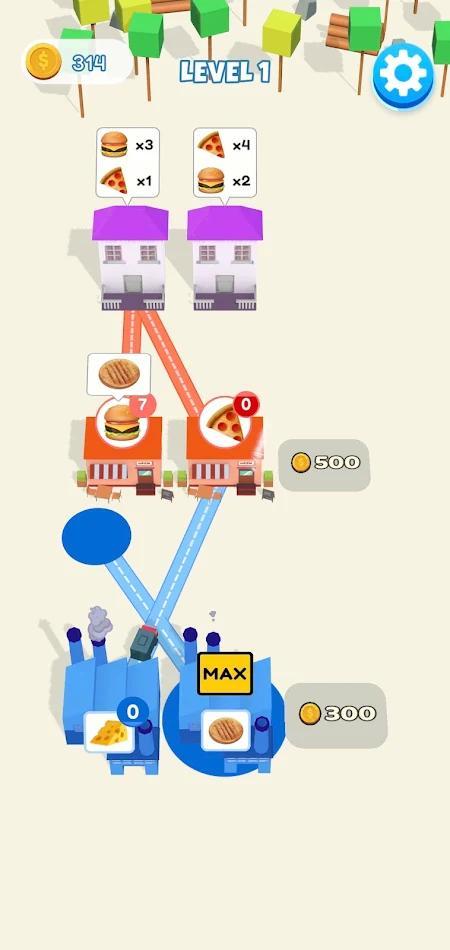 需要在游戏当中让自己去建造一条连接工厂以及运送原料的道路。游戏提供了多种道路建设方案,玩家可以根据地形特点选择最优路线,确保原料运输的高效性。同时还要考虑运输成本与效率的平衡,这为游戏增添了更多策略性。