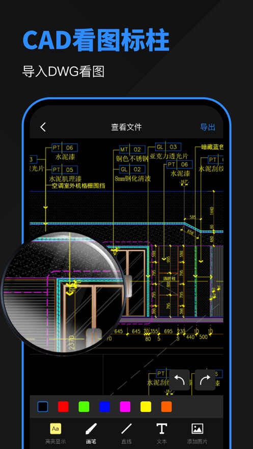 2、软件特别优化了CAD图纸的显示效果,能够快速加载并高清呈现各类复杂图纸细节,确保工程师在现场工作时能够获得与电脑端相近的查看体验。