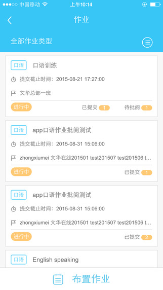 作业管理:教师可以灵活布置各类英语作业,包括听说读写多种形式,系统自动统计学生提交情况,支持在线批改和评分,并提供详细的作业完成情况分析报告,帮助教师精准把握每个学生的学习状况。