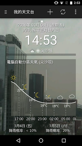 3.「我的天文台」是一个免费程序,但用户需向流动网路服务供应商缴付使用数据的费用。如使用漫游服务时,有关费用或会十分高昂。请确保你流动装置上的「资料漫游」选项已经关上。同时,该应用程序需要用户以下授权:「完整的网际网路存取权」、「检视Wi-Fi状态」、「检视网路状态」,于网际网路下载天气资料。