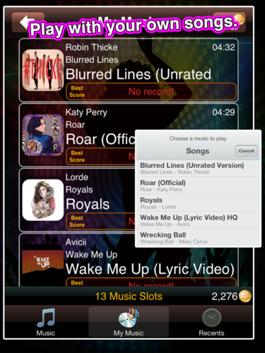 3.虽然游戏初始仅自带5首歌曲,但玩家可以导入手机中的本地音乐进行演奏,大大扩展了游戏的可玩性。