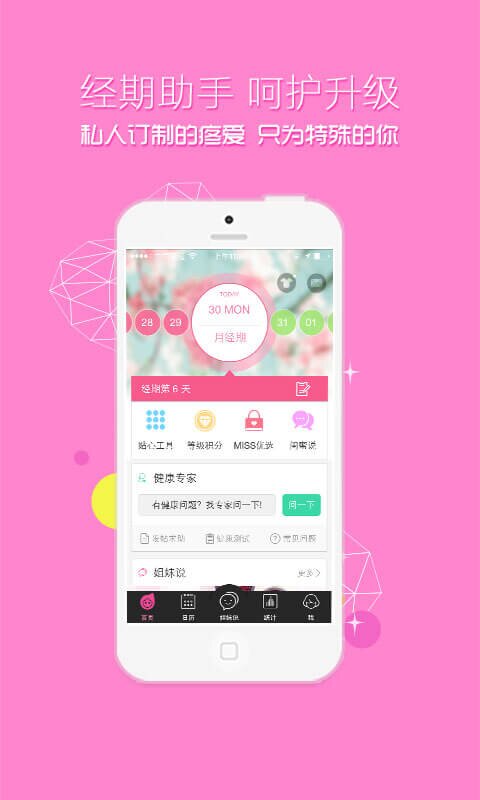 在这里,专业健康团队随时为你解答疑惑,每日推送个性化健康贴士,让你足不出户就能享受专业的妇科医疗建议。独特的经期日历功能让数据记录变得简单直观,我们始终致力于成为女性健康管理领域的领跑者!