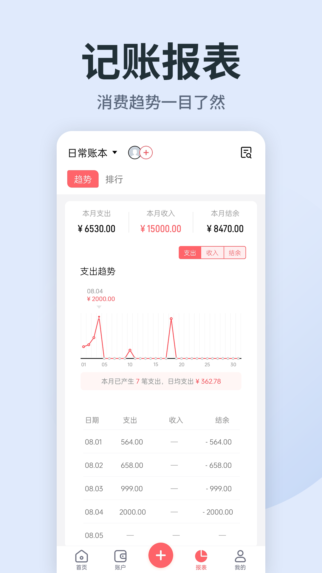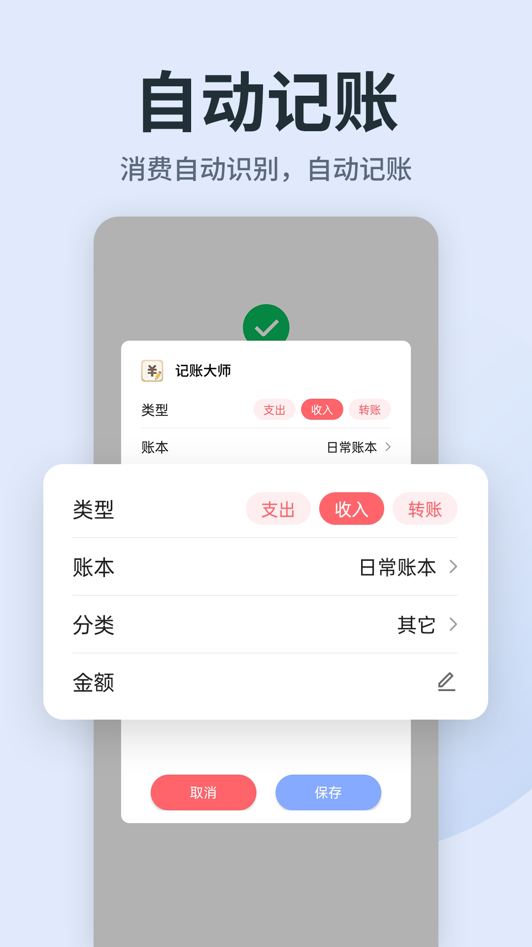 3、便捷的快速记账功能让记录日常开销变得轻松有趣,养成良好的理财习惯从记账大师开始。