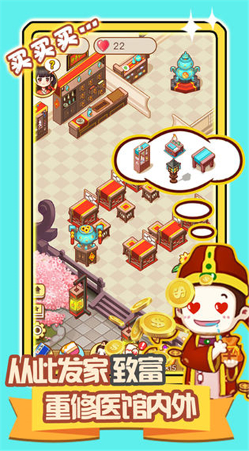 2、深度经营系统包含药材种植、学徒培养、药价调控等要素。玩家需要平衡成本与疗效,既要避免天价药方吓跑顾客,也要防止亏本经营。扩建时可选择专精儿科、妇科等不同科室,打造特色专科品牌。