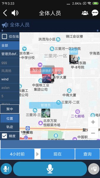 采用高精度GPS定位技术,定位精度可达5米内,支持历史轨迹回放和电子围栏设置,当成员进入或离开预设区域时自动触发告警,大幅提升外勤人员管理效率。