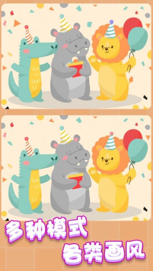 《疯狂找茬找不同》是一款充满趣味性的休闲益智手游,它将带你开启一场视觉与脑力的双重冒险。在丰富多彩的游戏场景中,你需要仔细观察每一处细节,通过点击屏幕找出隐藏的差异点。无论是打发闲暇时光还是锻炼观察力,这款游戏都能为你带来轻松愉快的体验。精心设计的关卡搭配多样化的图片题材,让你在挑战中不断收获惊喜与成就感,绝对是假期娱乐的绝佳选择。