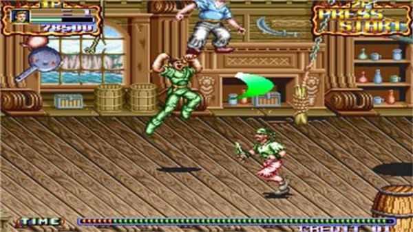 游戏采用经典的像素风格画面,鲜艳的色彩搭配和流畅的动画效果带来强烈的视觉冲击。铁钩船长的英雄形象和永不言败的精神深深感染着玩家,传递出积极向上的正能量。游戏还配备了详尽的教程系统,即使是街机游戏新手也能快速上手。这些元素共同构成了游戏独特的魅力,使其成为经久不衰的经典之作。