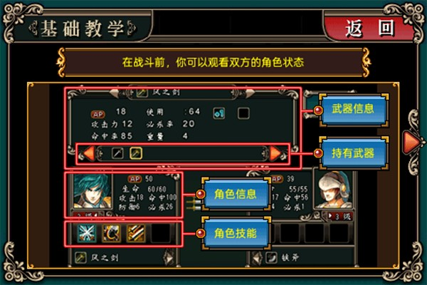 4.战斗操作采用双点击制:首次点击选择单位后,地图会显示该角色的可移动范围(蓝色区域)和攻击范围(红色区域)。再次点击目标位置即可自动寻路移动,若选择敌方单位则会触发攻击动作。注意利用地形高低差可以获得命中率加成,而森林等地形能提供防御增益。