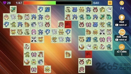 1.基本规则:游戏的核心玩法是寻找并连接相同的宠物图案。玩家需要在布满各种宠物图案的游戏界面中,找出两个完全相同的宠物,并通过不超过两次的直线将它们连接起来。连接路径可以是水平或垂直的直线,但不能穿过其他未被消除的图案。成功连接后,这对图案就会消失,玩家将获得相应分数。游戏的目标是在规定时间内清除所有图案,完成当前关卡。