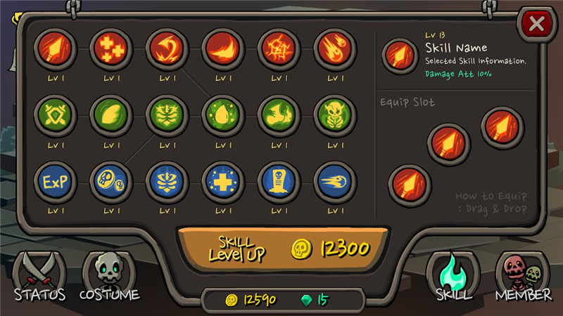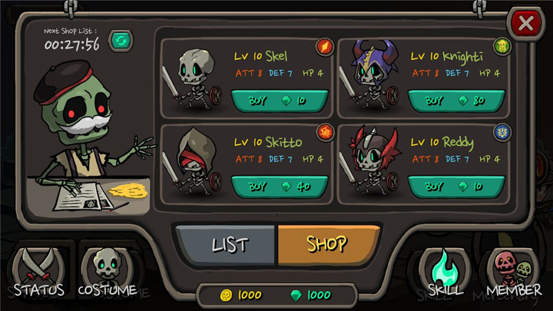 1.美术表现堪称手游巅峰,采用卡通渲染技术打造的骷髅角色既保留了恐怖元素又不失可爱,上百套装备均有独立的模型和特效。