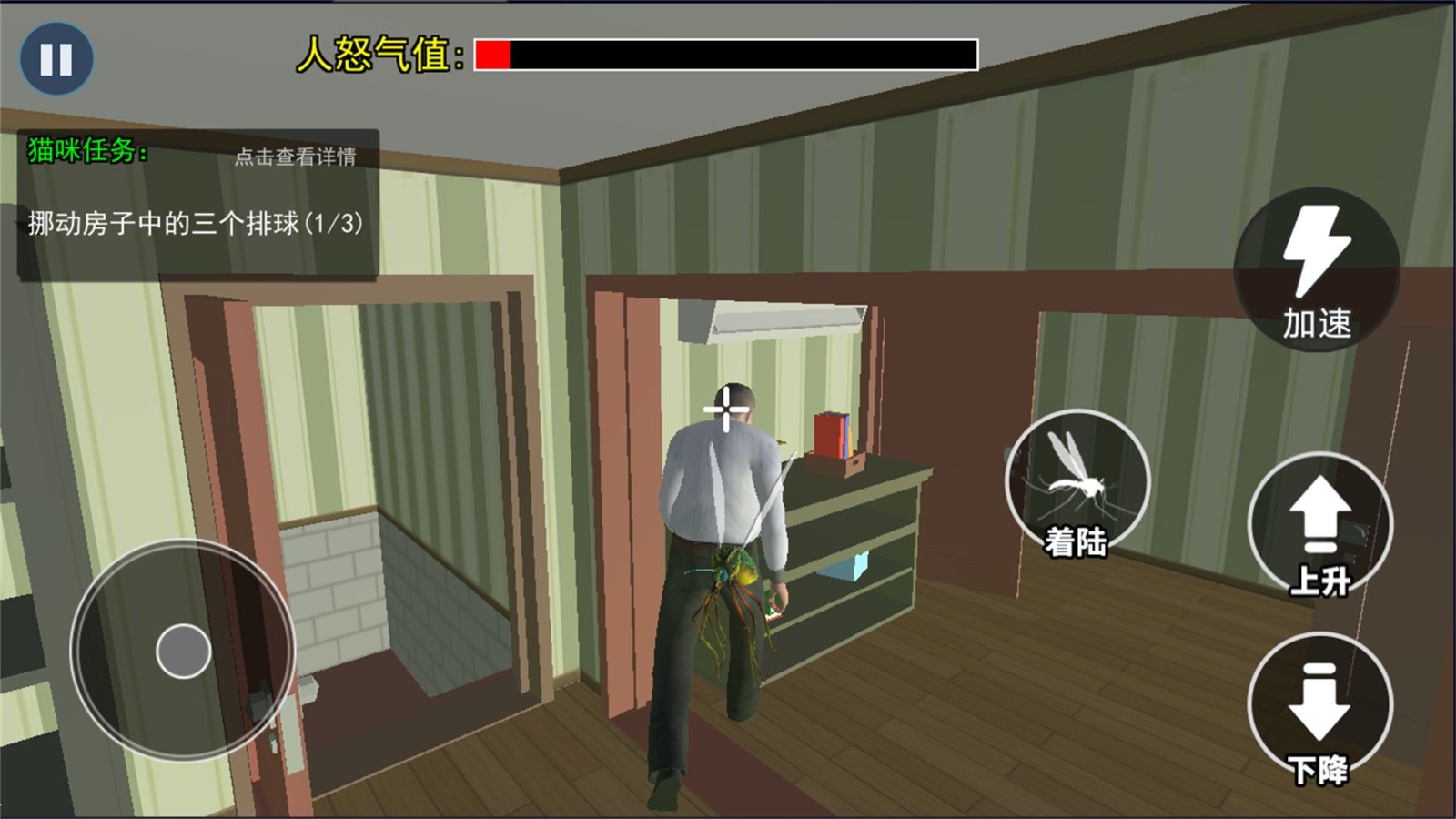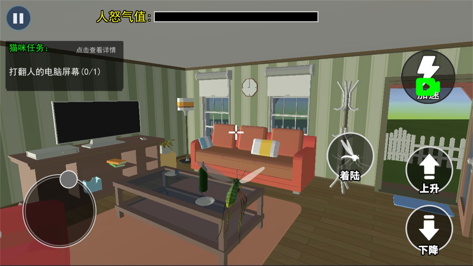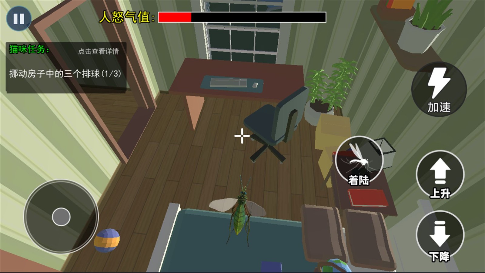 操作十分简单直观,通过虚拟摇杆控制蚊子飞行,在人类的视野盲区进行各种恶作剧。游戏还设置了多种道具和技能,帮助你更好地完成任务。现在就下载游戏,开始你的蚊子冒险之旅吧!