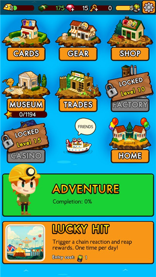3、建立你的扑克牌,以达到新的深度挖掘!通过收集和组合不同卡牌,解锁特殊技能,突破挖掘深度限制。