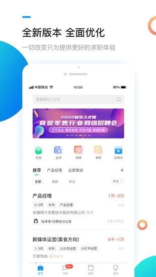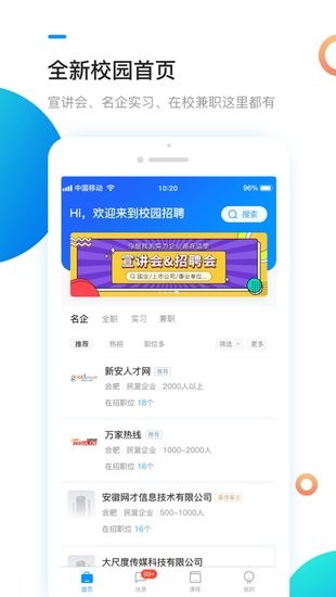 【校园招聘】聚焦安徽本地高校市场,为应届毕业生提供名企实习机会,及时推送校园宣讲会、双选会等重要信息。