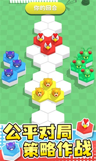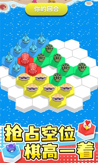 "基础移动"机制:玩家可以控制萌宠棋子在六边形网格上向任意相邻的六个方向移动一格,这种看似简单的走法实则暗藏玄机,合理的走位布局往往能为后续的连续跳跃创造有利条件。