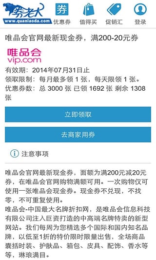 券老大APP是目前市场上最专业、最全面的优惠券整合平台。我们与数百家知名品牌和电商平台达成深度合作,确保用户能够获取最新、最优惠的折扣信息。平台特色包括:每日更新的餐饮优惠券(肯德基、麦当劳等)、主流电商平台专属折扣(淘宝、天猫、京东、1号店等)、精选商品推荐、促销活动汇总等。我们的专业团队会严格筛选优质优惠信息,确保用户获得真实有效的优惠。券老大还提供智能比价功能,帮助用户在不同平台间找到最优价格,真正做到一站式省钱购物。无论是日常购物还是大促期间,券老大都是您不可或缺的省钱助手。