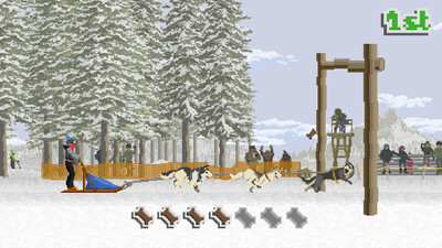 《狗拉雪橇传奇(DogSledSaga)》是一款像素风竞速游戏,在这款画面简单甚至有点简陋的游戏中,你将和自己的狗伙伴驾驶雪橇,一起穿行在漫漫的雪原上,你需要不时地抛给小狗们食物,让它们保持体力;还要应对一路上的各种复杂路况。